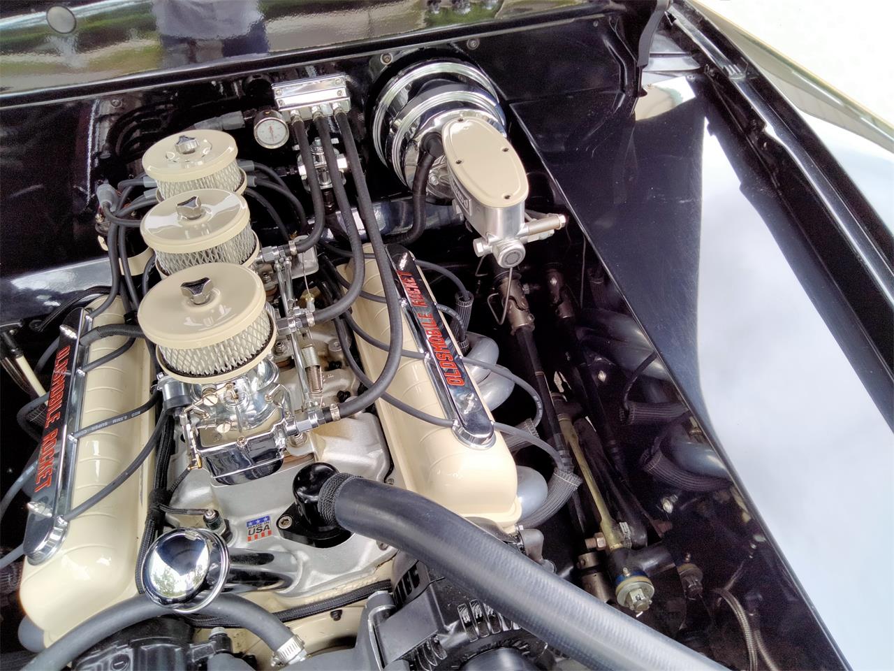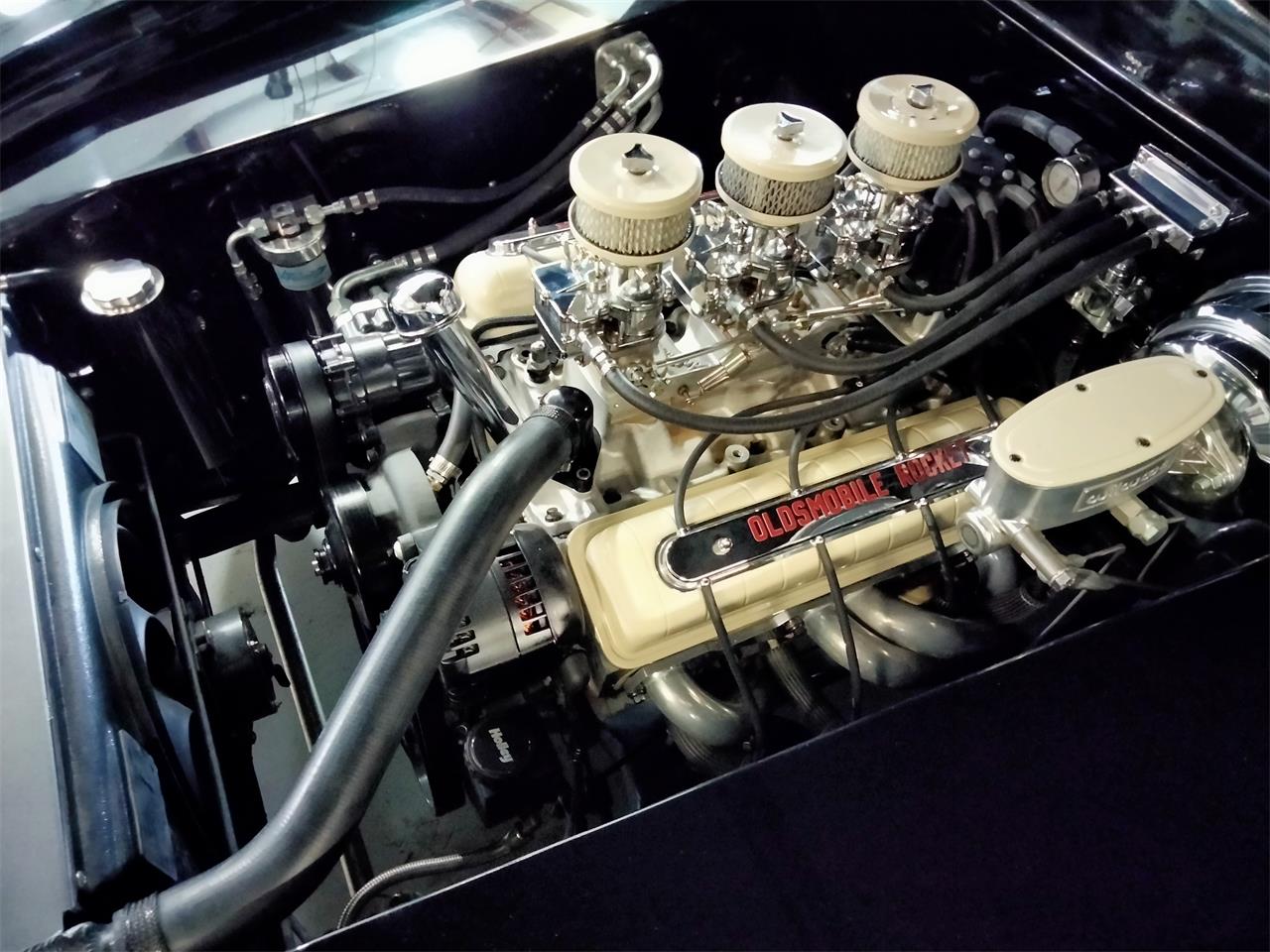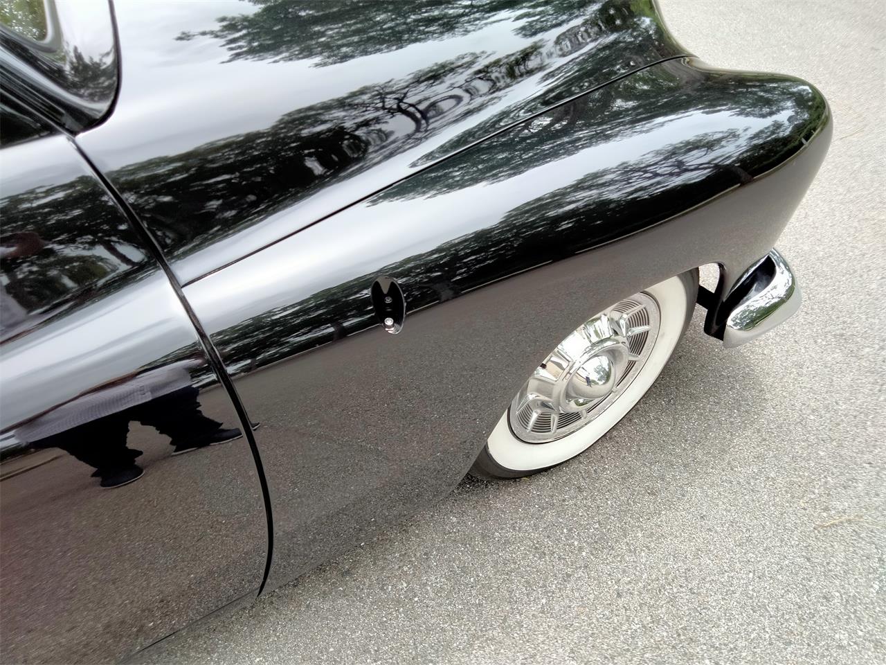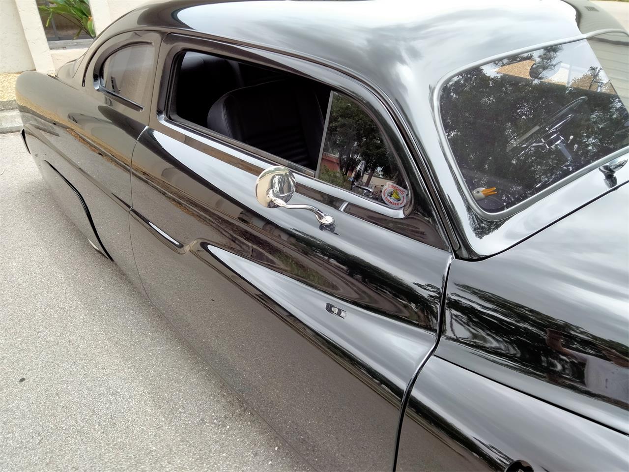 1951 Mercury lead sled, built by Harts Hot Rods in Brea, Ca for 5 time NHRA drag racer Joe Amato, complete frame off build with extensive body work, Chopped top with full size back window, pancake hood with a one piece front end with beautiful 1953 Desoto big tooth grill. Shaved and decked with electric doors and all side trim window revels removed. Custom front and rear bumpers center sections cut and replaced, all chrome replated and spotless. Built on a custom frame with four wheel coil overs and disk brakes, fuel cell, four bar 9″ Ford, topped of with an electronic E brake system (see pictures of frame). This 51 is powered by a 2021 383/450hp Al head, roller rockers, stroker motor brand new by Blue Print, not a rebuilt. Topped off with 3 new Stromberg carbs built by Speedway motors in the US with its custom fuel management system and linkage, electronic ignition with mini starter, Hedman headers, PS, PB, PW, AC and 140 amp alternator using a Holly front runner system. super neat appearance under the hood as it was made to look like a Olds rocket 88, period correct for the 60’s Hot Rodders, backed by a monster 4L80e electronic trans by TCI.