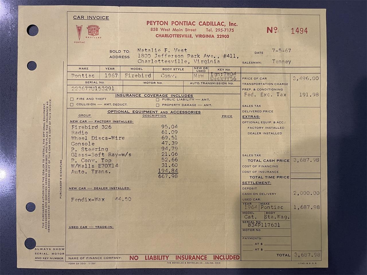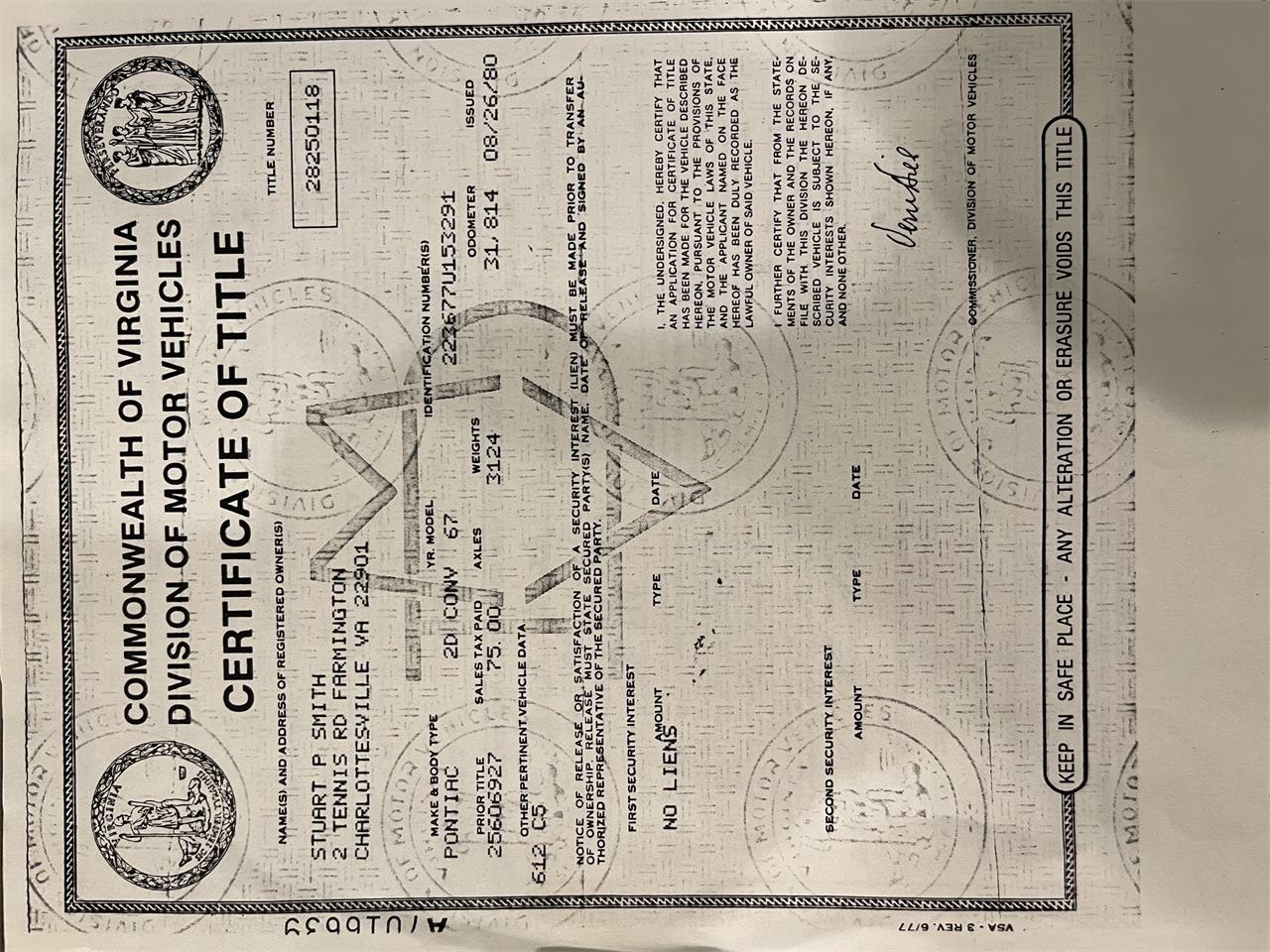 My 1967 Firebird is a true Survivor with 69,456 original miles (actual miles). It has had five owners over the last 55 years. I have lots of documentation from every owner showing repairs and mileage over the 5+ decades. The car is all original with few exceptions. Car had a repaint in the early 1980s when owned by the second owner. New carpet was installed three years ago with the previous owner. I have installed a new top with zip out rear glass and a front disc brake conversion kit for safety reasons roughly a year ago. New single exhaust was installed in the last six months.