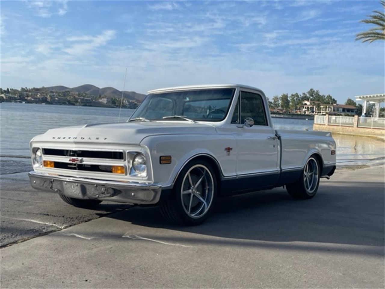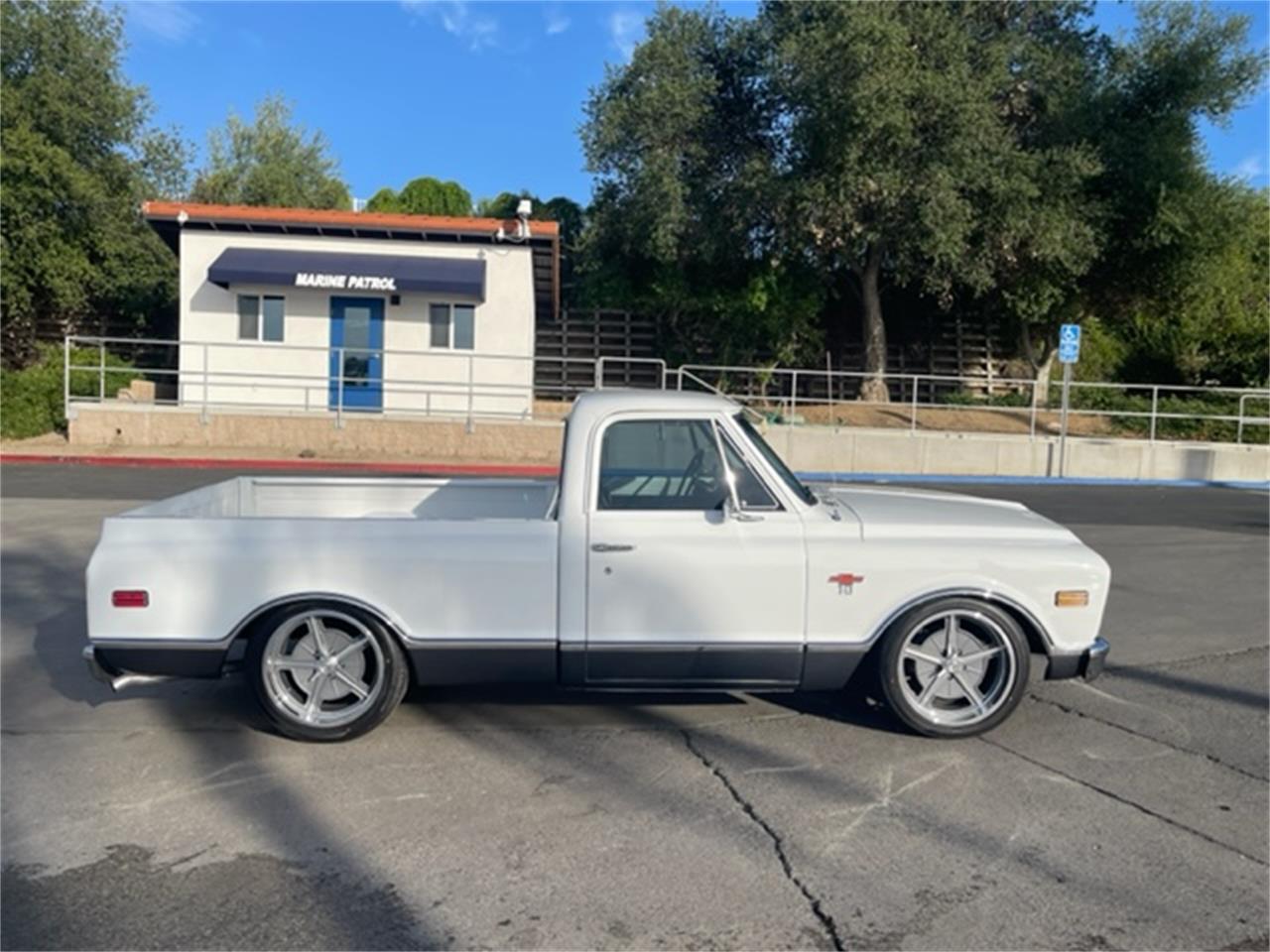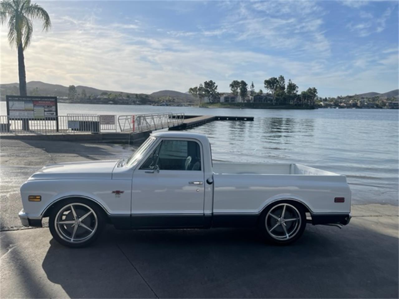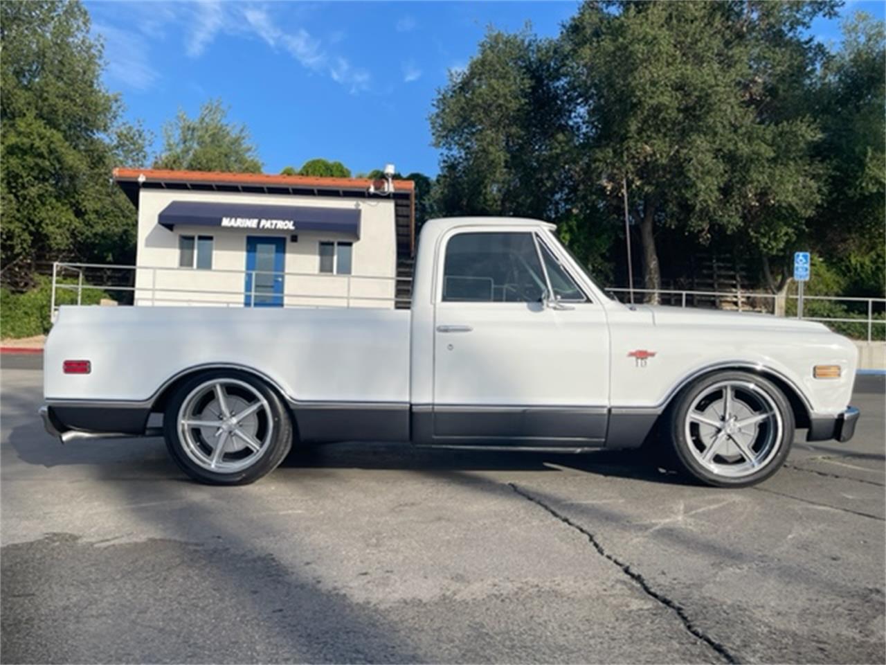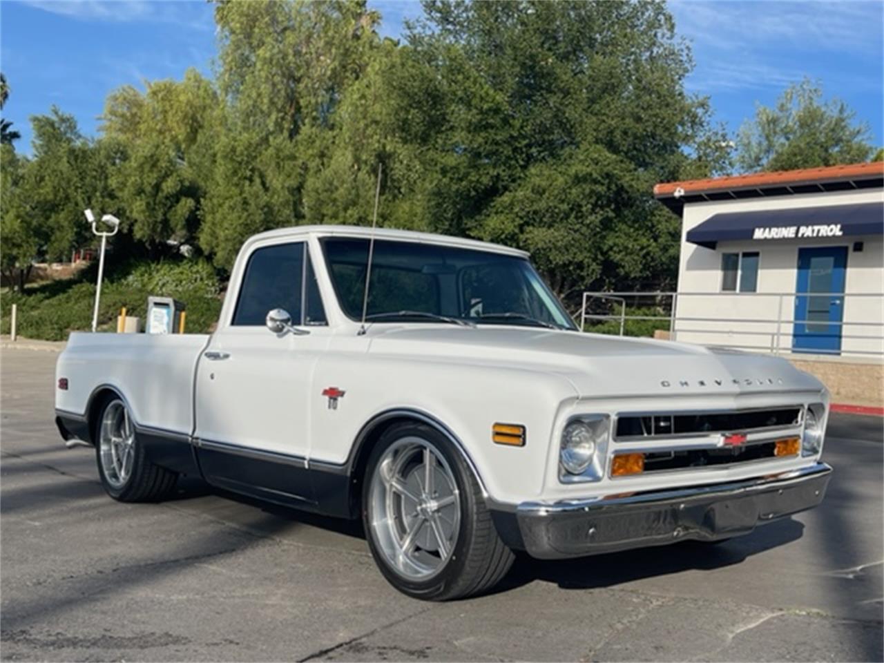 5″/6″ Drop on 20″ Riddler 605 Wheels with 295 rear tire and a 255 front tire, Rides extremely well with no rubbing, Paint matched spray in bedliner, Nice two tone with charcoal gray under moldings, Retro radio and Buddy Bench with hound’s-tooth interior (extremely clean and comfortable)